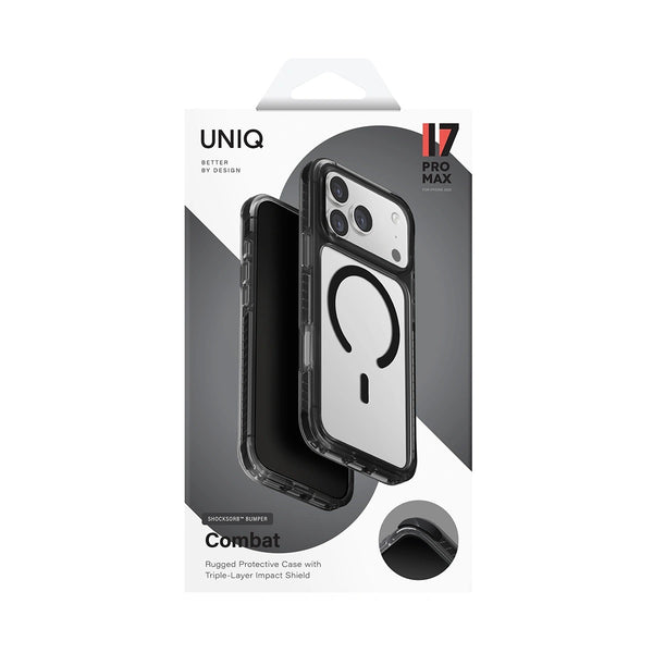 Protección de impacto borde a borde. Combat MagClick™ integra una estructura de 3 niveles con certificación de grado militar y ShockSorb™️ diseñada para máxima absorción de impactos. Compatible con carga inalámbrica y accesorios MagSafe. Fabricado para resistir impactos fuertes, puedes tener total tranquilidad bajo cualquier condición.