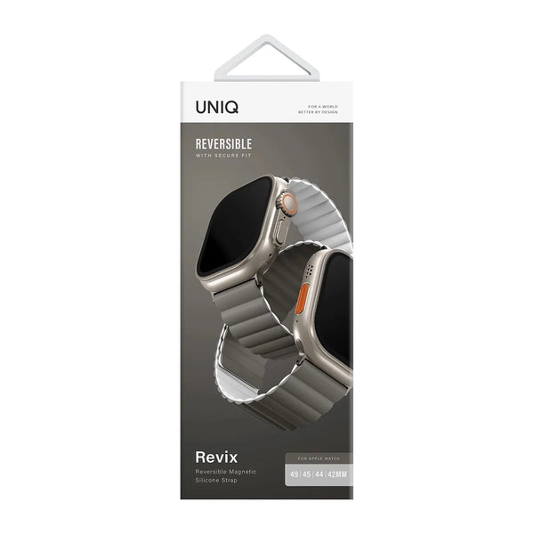 Explora un mundo de posibilidades con Revix, una correa reversible de dos colores que transforma tu estilo con un solo giro. Cada correa está fabricada con silicona ultra suave y acabado liso, garantizando una sensación de ligereza y comodidad en tu muñeca durante todo el día. Cambia de estilo sin complicaciones con Revix.
